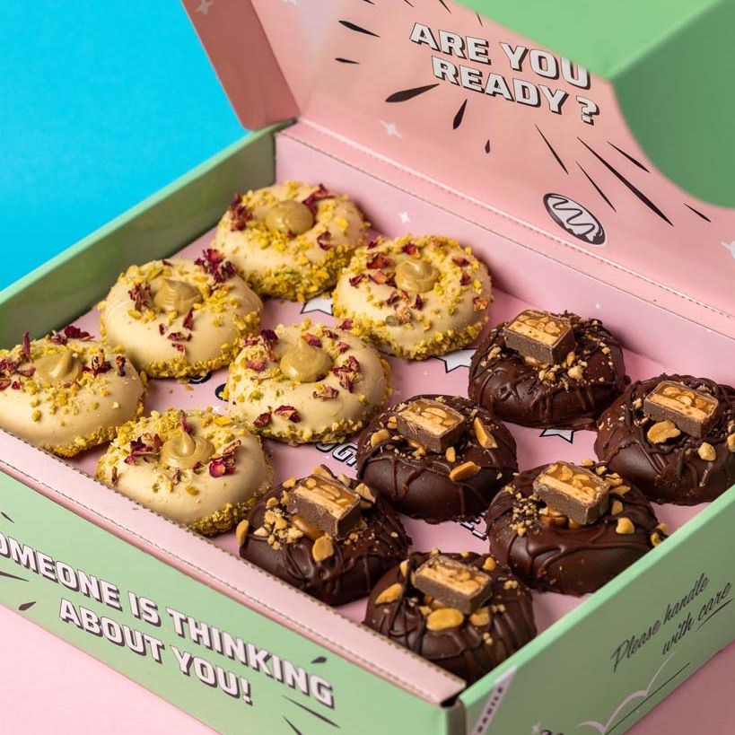 Wir liefern überall im UK, den Ländern der EU und den USA. Mit unserem Versandpartner DHL Express kommen die Doughnuts in weniger als 24 Stunden bei dir an!