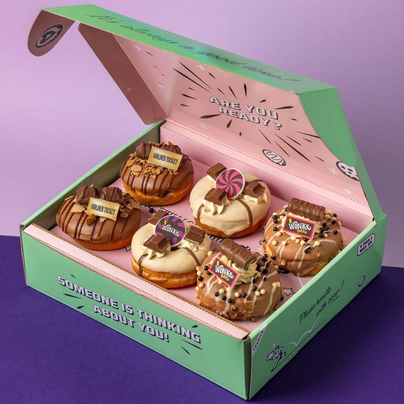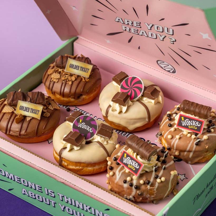 Tauche ein in die Welt der Schokolade mit unserem Willy Wonka Special! Jeder handgefertigte Donut in dieser Box ist eine Hommage an die Magie der Schokolade 🍫💫