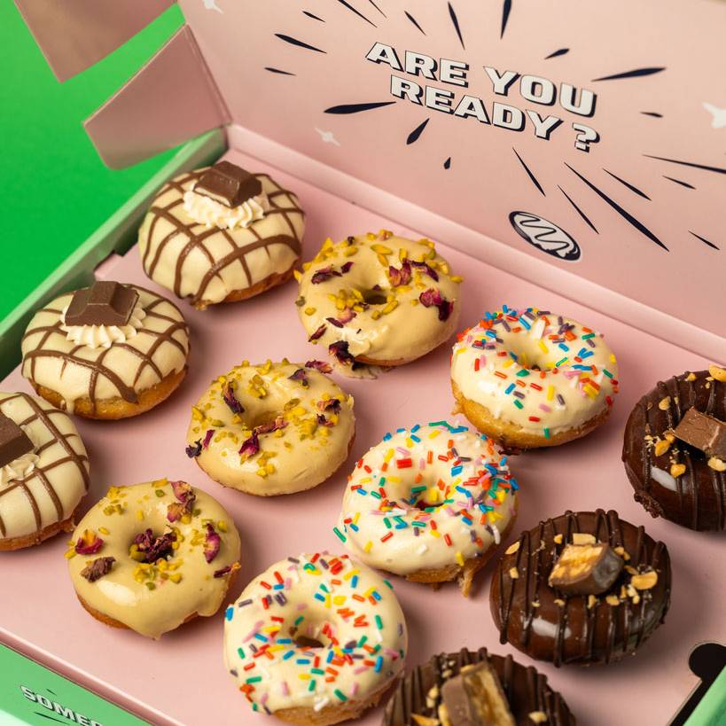 Wir liefern überall im UK, den Ländern der EU und den USA. Mit unserem Versandpartner DHL Express kommen die Doughnuts in weniger als 24 Stunden bei dir an!