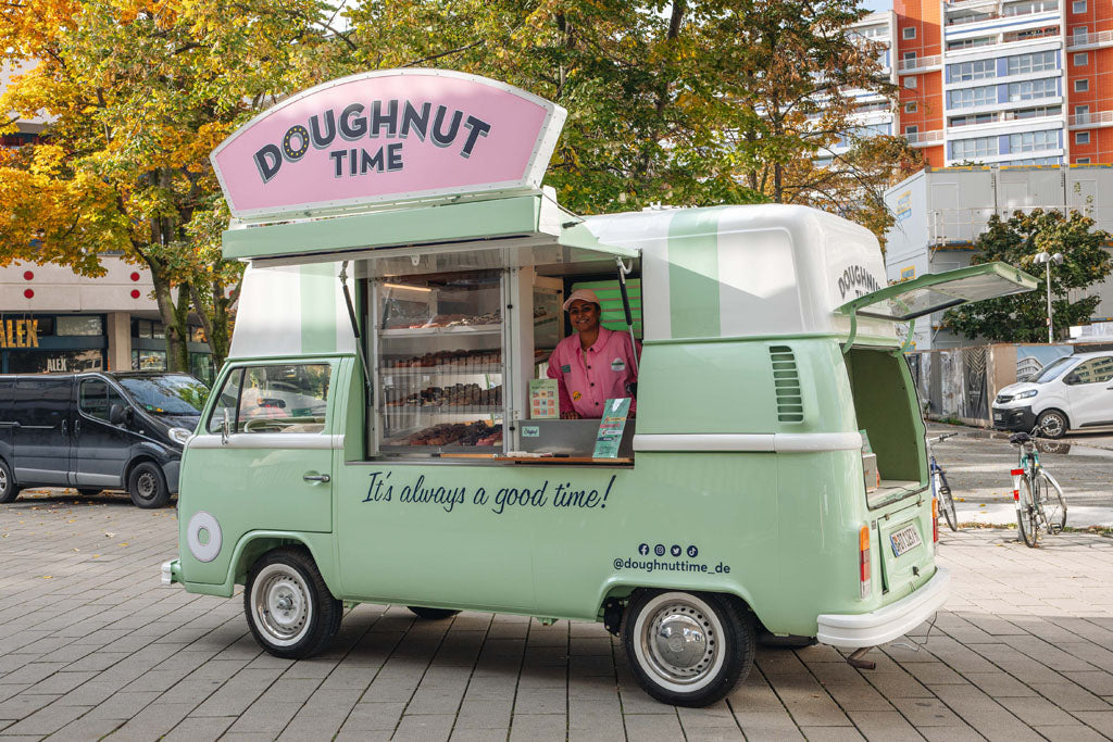 Unser Food Truck "Emma" ist ein echter Hingucker und macht sich super auf Food Markets, Festivals, Parties & Firmen-Events. Verwöhne deine Gäste mit frisch gebackenen Donuts.